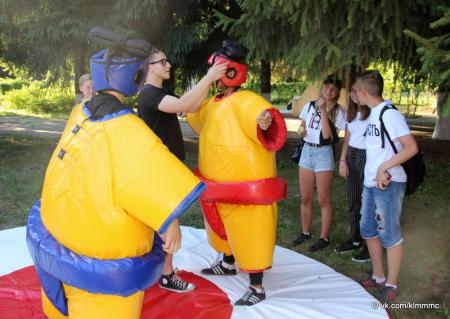 Хорошее настроение жителям и гостям Радужного подарили молодежные центры «Славяне» и Надежда» Все желающие могли пострелять из пейнтбольных маркеров шариками с краской, а также пройти аттракционы спортивно-развлекательной игры «Большие гонки»: примерить на себя роль бойцов сумо, поиграть в гигантский боулинг и словно белки прокатиться в больших надувных колесах.