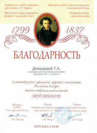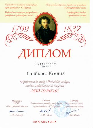 В начале апреля стали известны имена победителей Российского конкурса рисунка «Мой Пушкин», который был организован Международной детской художественной галереей, Государственным историко-литературным музеем-заповедником А.С. Пушкина, ВТОО «Союз художников России» и Всероссийской ассоциацией международных культурных и гуманитарных связей в начале 2018 года.
