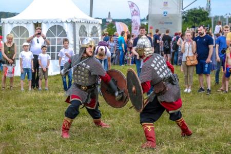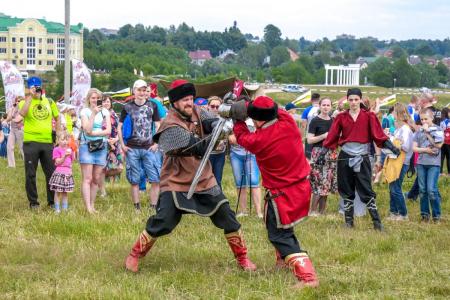 В рамках фестиваля национальных видов спорта «Русский мир», прошедшего 30 июня в Сергиевом Посаде, действовала площадка арт-фехтования – отдельной дисциплины спортивного фехтования, где встречаются не противники, а партнеры. Бой заранее разучен и отрепетирован. По сути, артистическое фехтование – это театр по спортивным правилам. Неотъемлемой частью поединка являются красочные костюмы и доспехи.