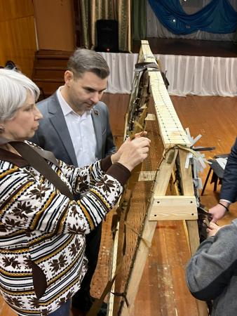 Депутат Совета депутатов, руководитель депутатского объединения Всероссийской политической партии "Единая Россия" в Совете депутатов Городского округа Коломна Сергей Орлов вместе с коллегой по депутатскому корпусу Алексеем Харитоновым посетили мастерскую по плетению маскировочных сетей для СВО.