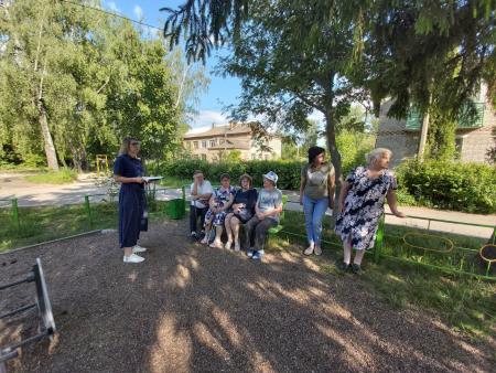 Начальник территориального отдела Анна Пугач встретилась с жителями микрорайона Щурово. С жителями домов, расположенных в переулке Крупской, обсудили вопросы содержания двороых территорий, обрезку деревьев и вывоз мусора.