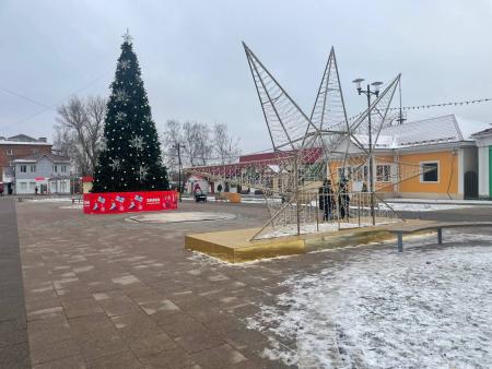 Сегодня украшенная общественная территория радует жителей и гостей города своим новогодним убранством.