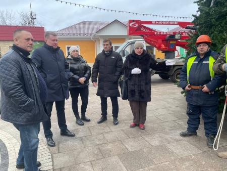 Еще 11 декабря в ходе рабочего обхода территорий первый заместитель Главы Денис Лубяной совместно с заместителем председателя Совета депутатов Романом Андросовым проверили подготовку общественного пространства на площади Коммунистической в Озёрах к празднованию Нового года и Рождества.