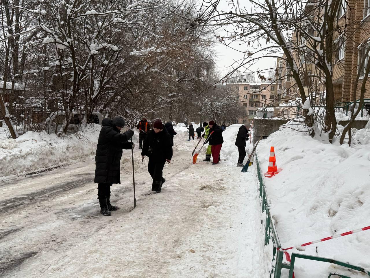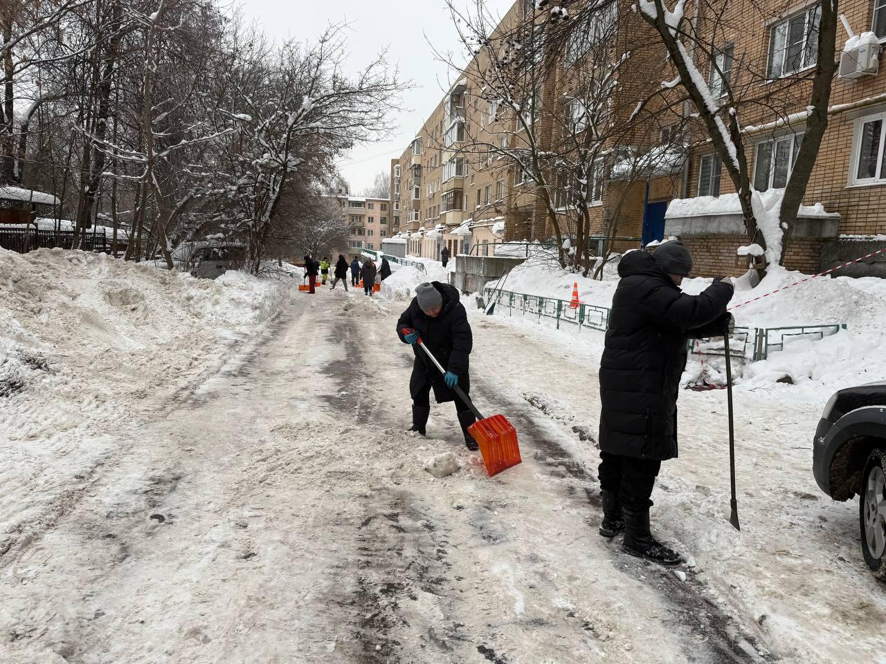 Рабочие оперативно расчистили проезжую часть дороги и тротуары, обеспечив безопасность передвижения пешеходов и автомобилей. Собранный снег вывезли с территории двора на специальную площадку.