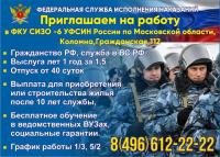 ФКУ СИЗО-6 ГУФСИН России по Московской области приглашает на службу по контракту.