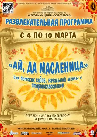 С 4 по 10 марта Культурный центр «Дом Озерова» приглашает всех желающих на один из самых ярких, веселых, шумных и по-настоящему народных праздников в нашей стране – «Ай, да Масленица»!