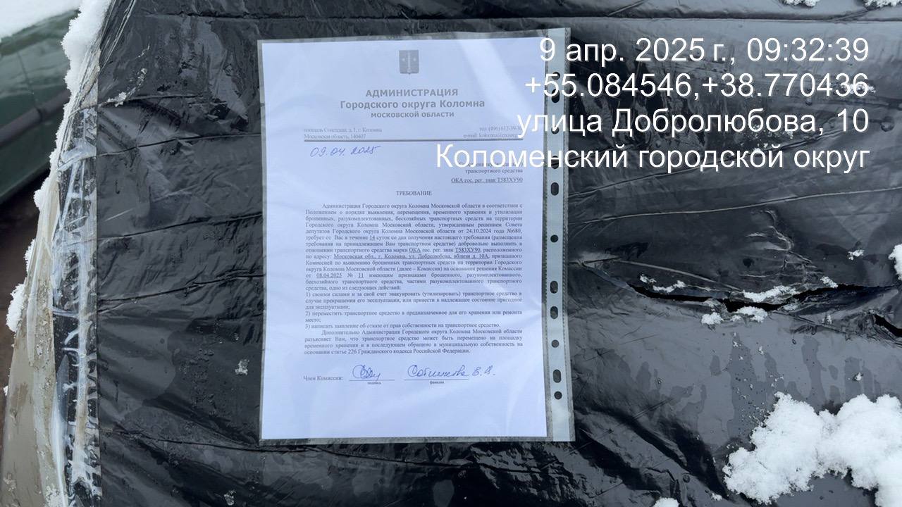 Разыскивается собственник (владелец) транспортного средства марка/модель ОКА гос. рег. знак Т583ХУ90