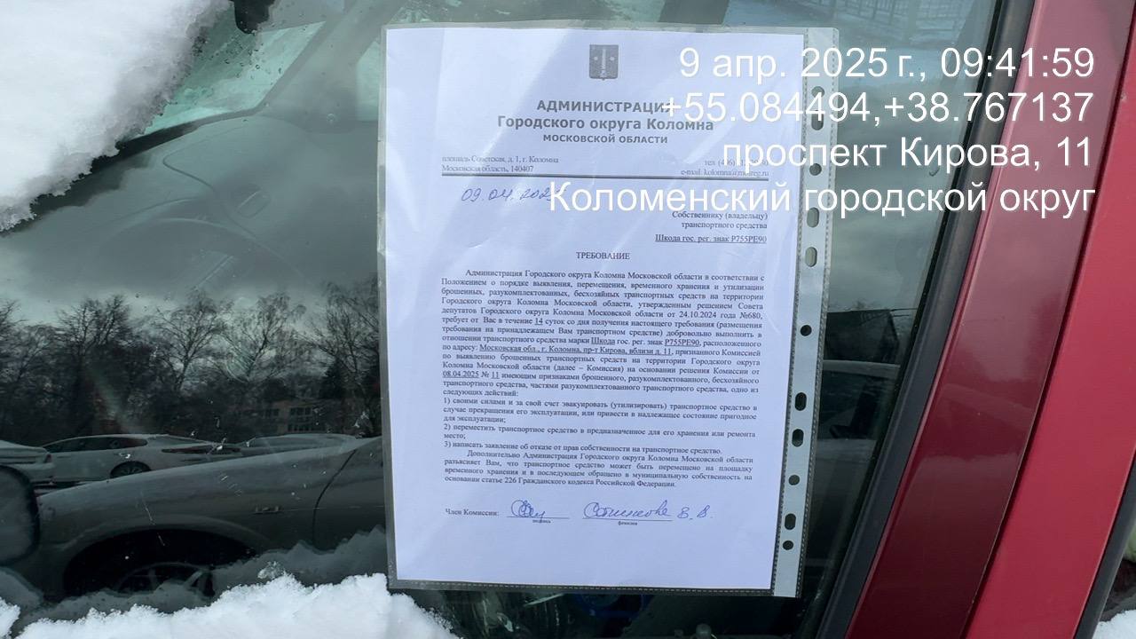 Разыскивается собственник (владелец) транспортного средства марка/модель Шкода гос. рег. знак Р755РЕ90, припаркованного по адресу: Московская обл., г. Коломна, пр-т Кирова, вблизи д. 11.