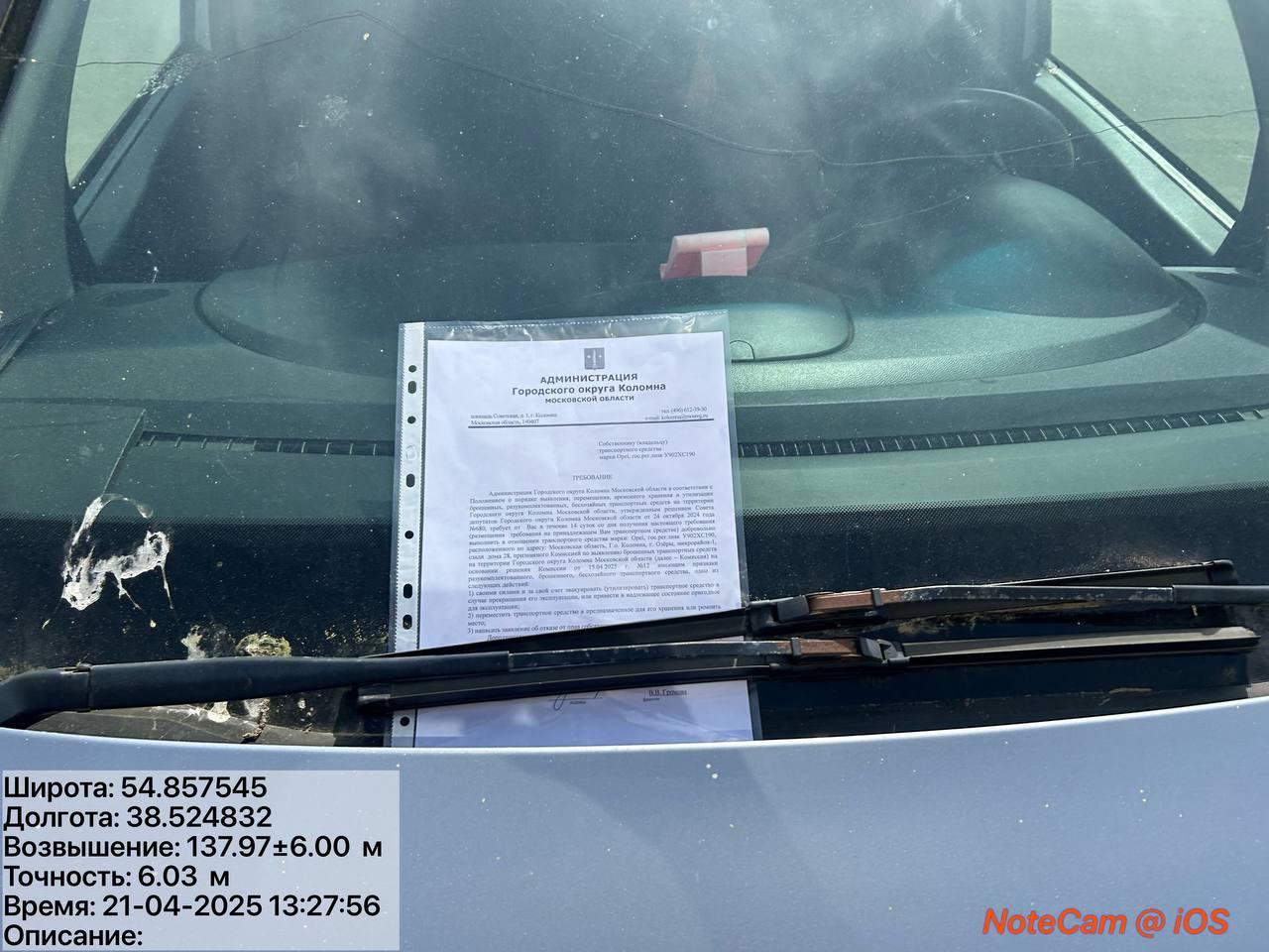 Разыскивается собственник (владелец) транспортного средства марки Opel, гос.рег.знак У902ХС190, расположенного по адресу: Московская область, Г.о. Коломна, г. Озёры, микрорайон-1, сзади дома 28.