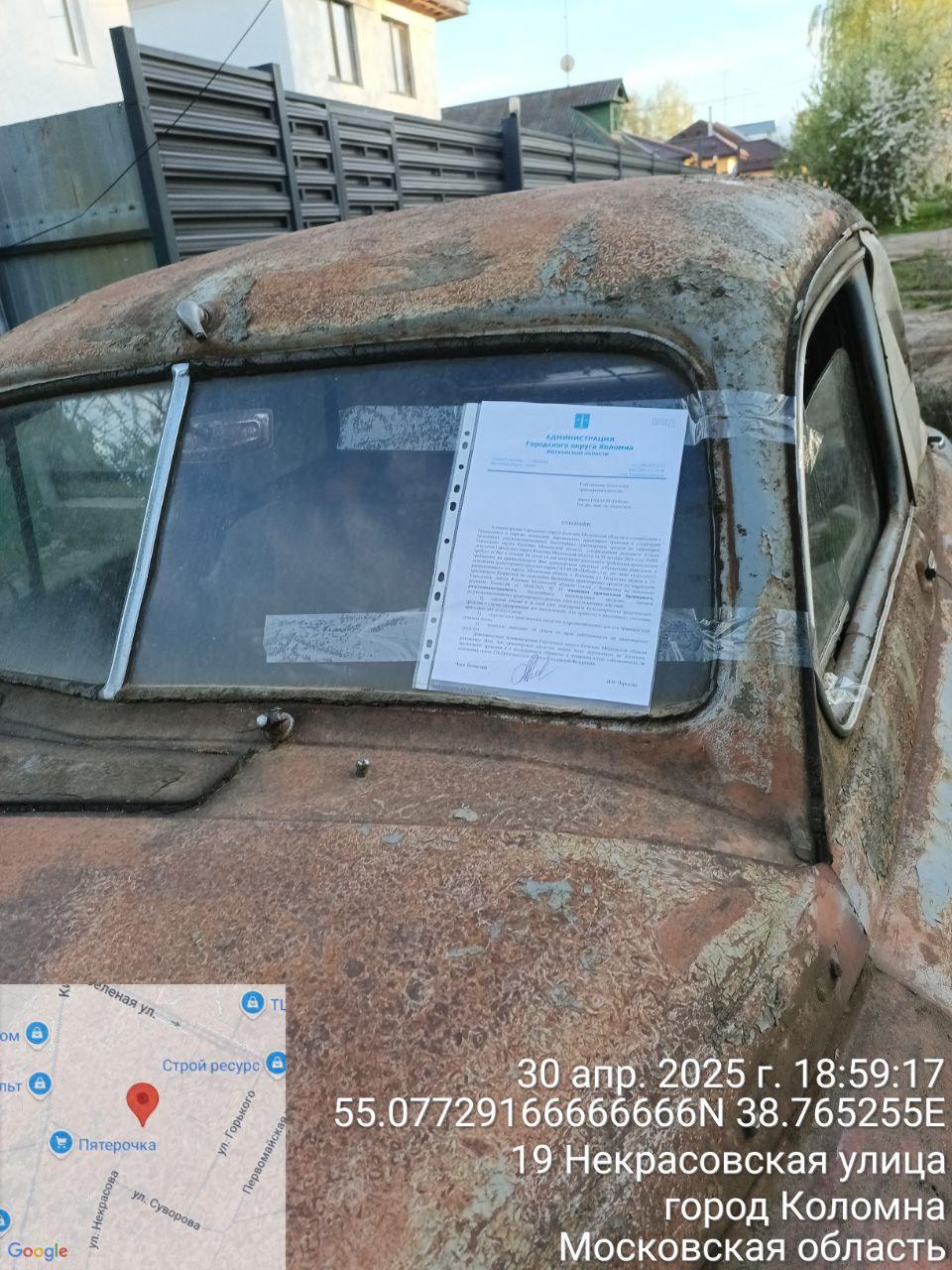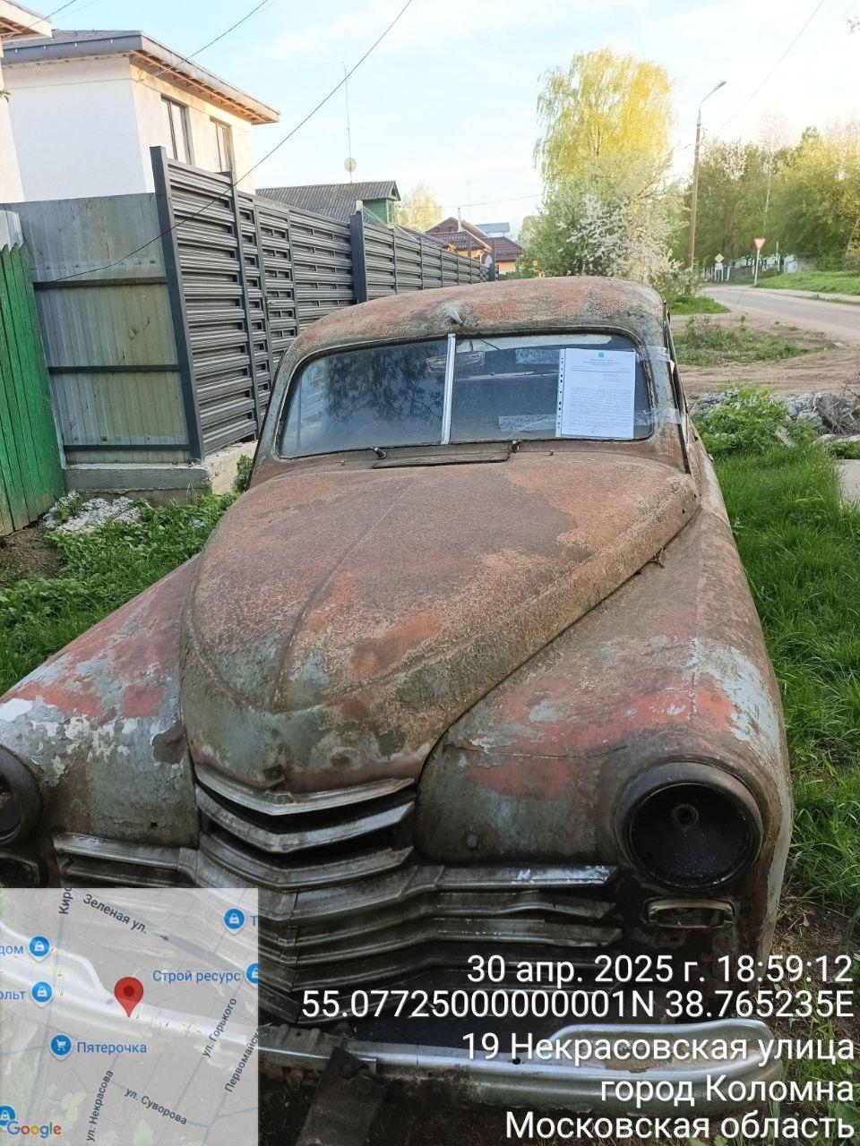 Разыскивается собственник (владелец) транспортного средства марки: ГАЗ-М-20 «Победа», гос. рег. знак отсутствует, расположенный по адресу: Московская область, г. Коломна, ул. Некрасова, вблизи д. 21.