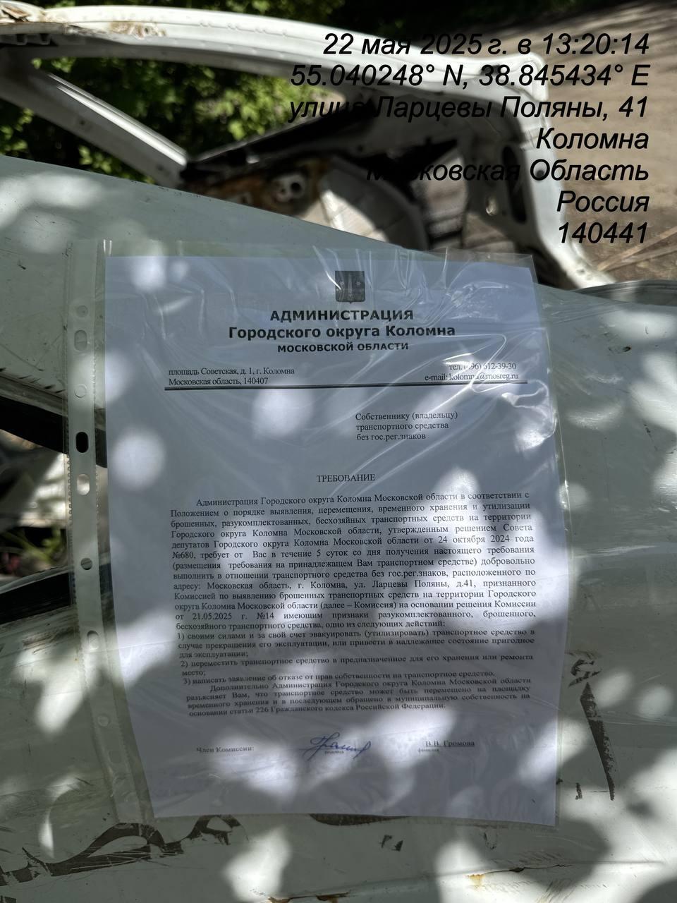Разыскивается собственник (владелец) транспортного средства без гос. рег. знаков, расположенного по адресу: Московская область, г. Коломна, ул. Ларцевы Поляны, д.41.