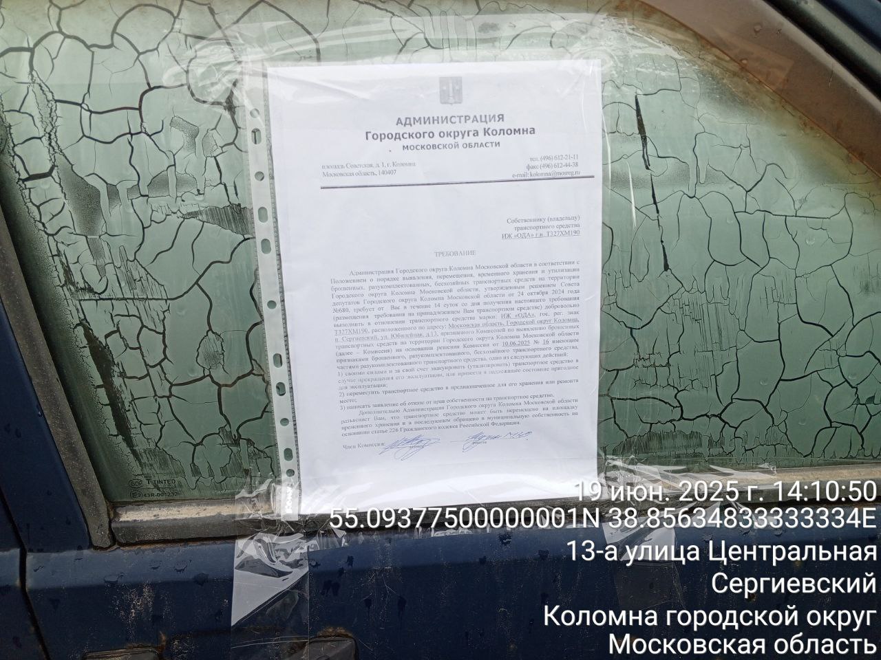 Разыскивается собственник (владелец) транспортного средства марка/модель ИЖ-2126 "ОДА" гос. рег. знак Т327ХМ190, припаркованного по адресу: Московская область, г.о. Коломна, п. Сергиевский, ул. Юбилейная, вблизи д. 13.
