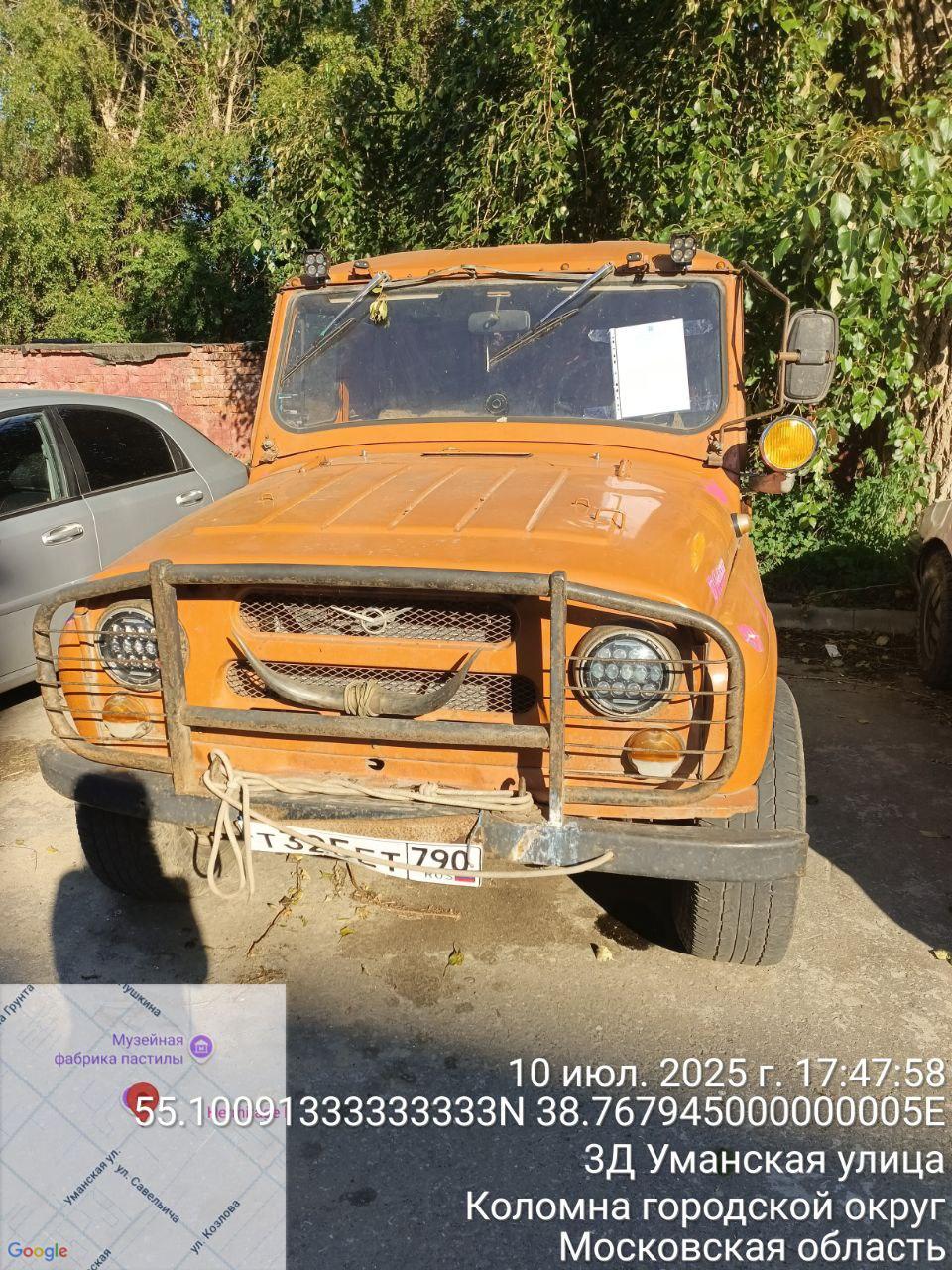 Разыскивается собственник (владелец) транспортного средства марки: УАЗ, гос. рег. знак: Т325ЕТ790, расположенный по адресу: Московская область, г. Коломна, Уманская, вблизи д. 3Д.