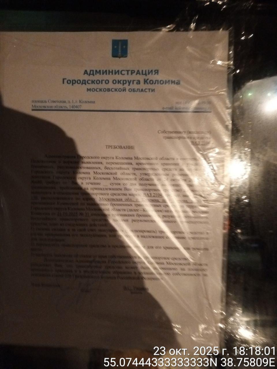 Разыскивается собственник (владелец) транспортного средства марки ВАЗ 2104 гос. рег. знак Е308ХС150, размещенного по адресу: Московская обл., Г.о. Коломна, пр. Кирова, 80-84.