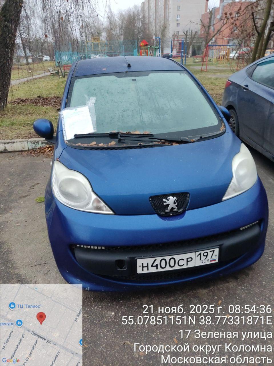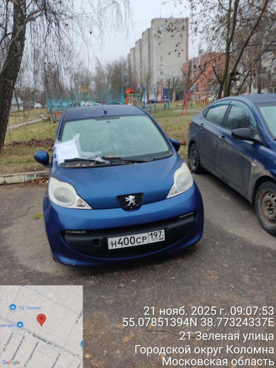 Разыскивается собственник (владелец) транспортного средства марки PEUGEOT 107, гос. рег. знак Н400СР197, расположенного по адресу: Московская область, г. Коломна, ул. Зеленая, вблизи д. 17.