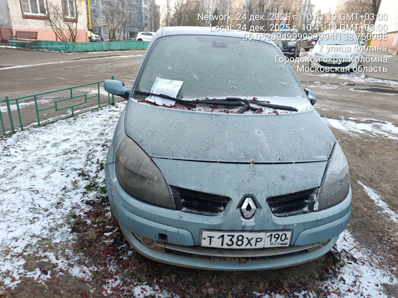 Администрация Городского округа Коломна » Деятельность » Благоустройство » Комиссия по выявлению брошенных ТС » Разыскивается собственник (владелец) транспортного средства марки: RENAULT SCENIC гос. рег. знак Т138ХР190, расположенный по адресу: Московская область, г. Коломна, ул. Филина, д. 7