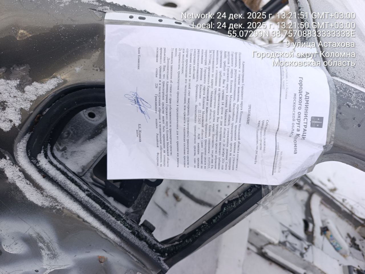 Разыскивается собственник (владелец) транспортного средства марки: Неизвестно гос. рег. знак б/н, расположенный по адресу: Московская область, г. Коломна, (координаты — 55.072515, 38.757144)