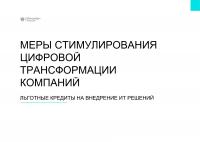 Указанная мера поддержки реализуется в соответствии с постановлением Правительства Российской Федерации от 5 декабря 2019 г. № 1598 "Об утверждении правил предоставления из федерального бюджета субсидий в целях обеспечения льготного кредитования проектов по цифровой трансформации, реализуемых на основе российских решений в сфере информационных технологий".