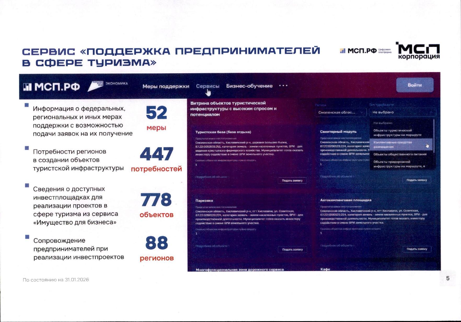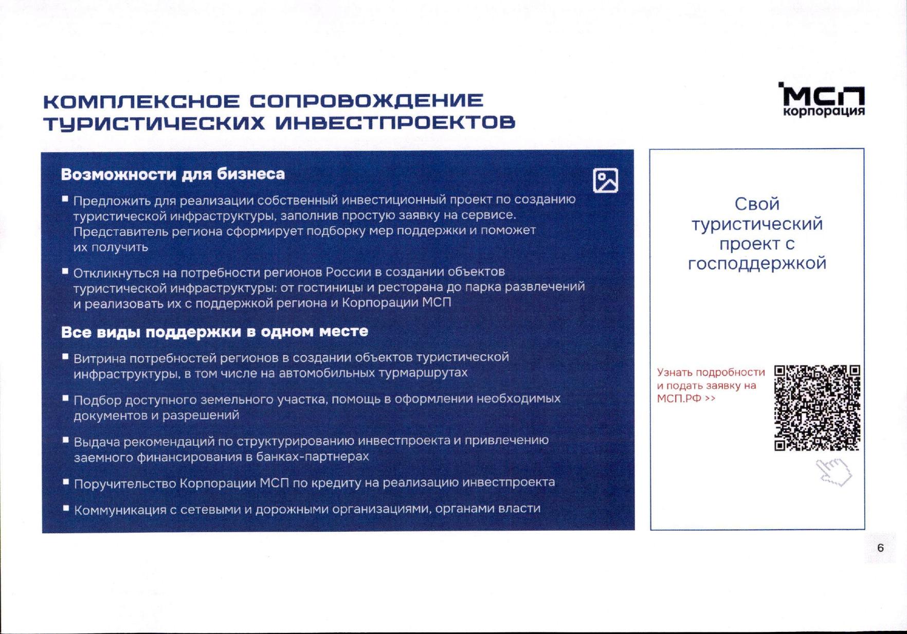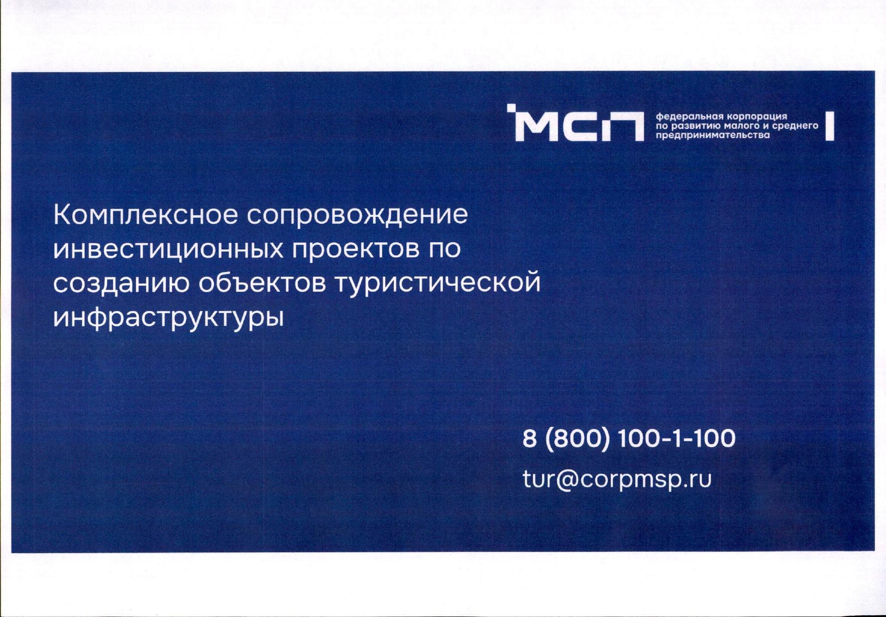 О мерах поддержки и о возможности подачи заявок на реализацию инвестиционных проектов в сфере туризма на Цифровой платформе МСП.РФ