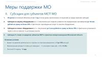 Меры поддержки малого и среднего бизнеса для преодоления санкционного давления (федеральные)16 март 2022Пакет региональных мер поддержки бизнеса, которые нацелены на развитие импортозамещения18 март 2022Важные изменения для бизнеса16 март 2022Банк России совместно с Правительством запускает антикризисные программы льготного кредитования МСП16 март 2022Арендаторы земли получили возможность продлить срок действия договоров аренды16 март 2022