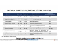 Кроме того, в целях оказания содействия при получении льготных займов, Фонд развития промышленности Московской области оказывает методическую поддержку компаниям-заявителей, контакты для связи: +7 (495) 136-99-09; e-mail: frpmo@mosreg.ru