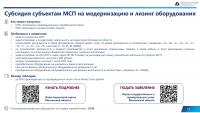 Предприятия малого и среднего бизнеса могут уточнить код основного вида деятельности и получить финансовую помощь16 июнь 2020Меры поддержки бизнеса разных отраслей экономики размещены на сайте Правительства РФ23 май 2020В Коломне ввели меры поддержки арендаторов муниципального имущества25 май 2020Комплекс мер поддержки для отдаленных городских округов Подмосковья06 ноябрь 2020Поддержка производственных и сельскохозяйственных предприятий в центре «Мой бизнес»07 сентябрь 2021