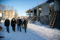 Второй точкой объезда стала стройплощадка, где возводится новый школьный корпус гимназии № 2 «Квантор». Помимо учебных классов, здесь планируется разместить лабораторию, столовою, медицинский блок, библиотеку, спортивный и актовый зал. Территория вокруг нового корпуса гимназии будет благоустроена.