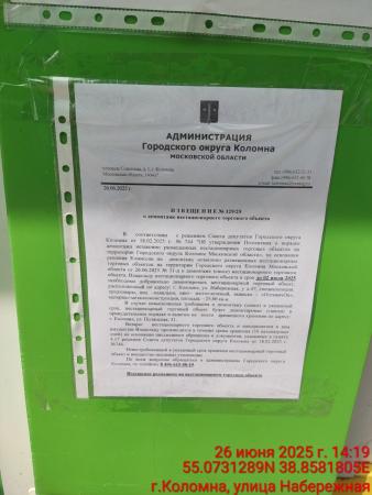 Извещение № 129/25 о демонтаже НТО по адресу: г. Коломна, ул. Набережная, у д.47, специализация: продтовары, вид –павильон, цвет– желто-зеленый, вывеска – «ОптовичОк», материал-металлоконструкция, площадь – 25,00 кв.м.