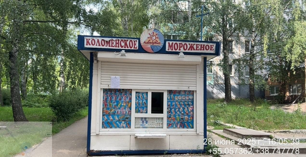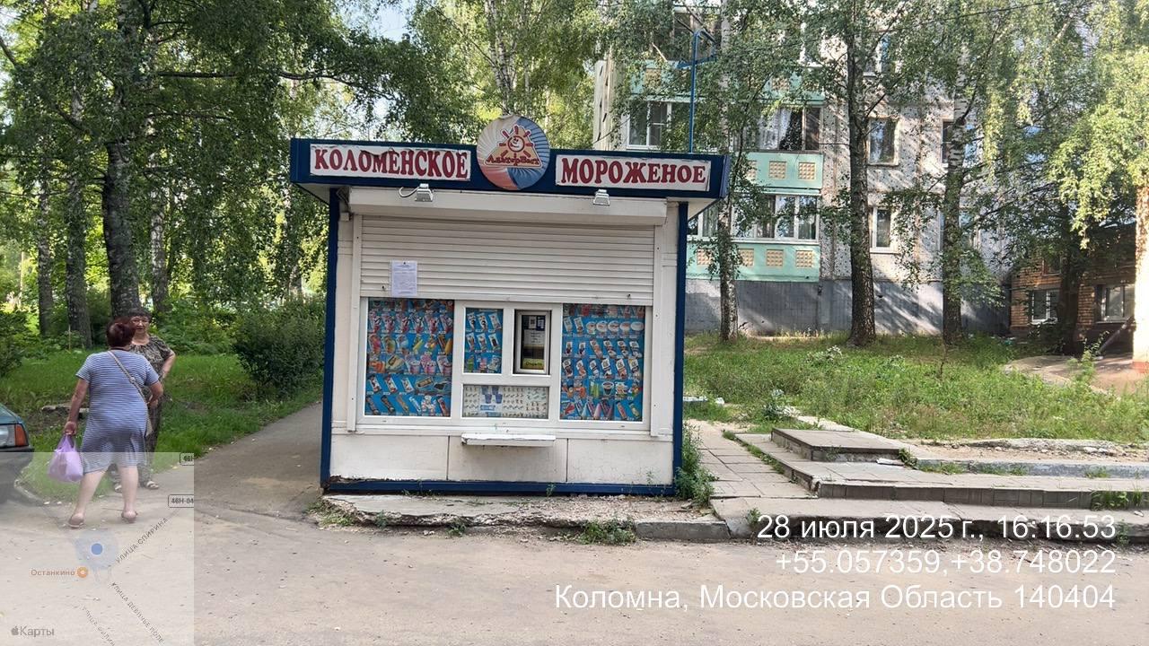 Уведомление о демонтаже нестационарного торгового объекта по адресу: г.Коломна, ул. Девичье поле, у д.13, в связи с расторжением договора №74 от 28.06.17. Специализация-мороженое, вид-киоск, цвет-синий, вывеска-«Коломенское мороженое», пл.-6,60 кв.м.
