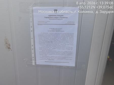 Извещение № 162/26 о демонтаже (сносе) НТО по адресу: Г.о. Коломна, деревня Зарудня, специализация: Промтовары, вид – павильон, цвет–серый, вывеска – отсутствует, материал-металлоконструкция, площадь - 50,00 кв.м.