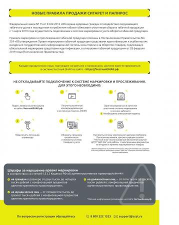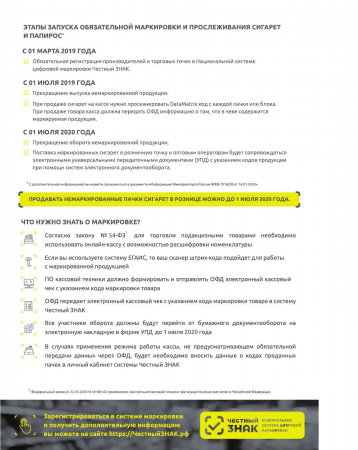 Письмо Министерства промышленности и торговли Российской Федерации о запрете с 01.07.2020 на территории Российской Федерации оборота немаркированных средствами идентификации сигарет и папирос, а также обувных товаров.18 июнь 2020Разъяснения по вопросу временной приостановки деятельности объектов розничной торговли, за исключением аптек и аптечных пунктов, объектов розничной торговли, в которых осуществляется заключение договоров на оказание услуг связи.09 апрель 2020Роспотребнадзор сообщает о случаях мошенничества в сфере защиты прав потребителей23 апрель 2019О запрете продажи алкогольной продукции с 23:00 до 08:00 следующих суток11 июнь 2020