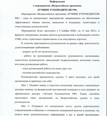 Всероссийский конкурс "Лучшие руководители РФ. Всероссийское признание"