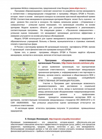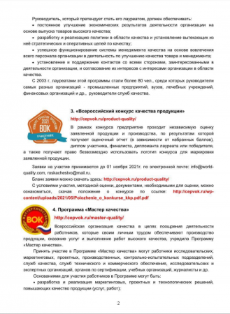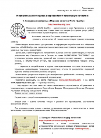 Программы и конкурсы оценки качества продукции и услуг, реализуемых ВОК