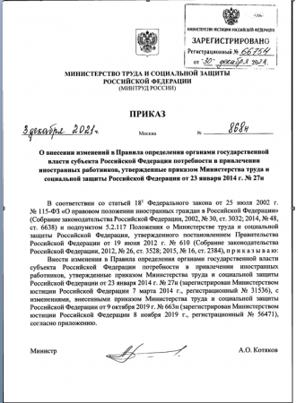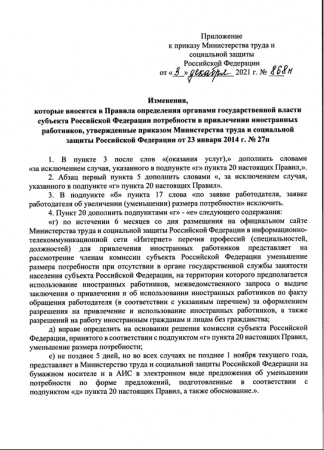 Изменения в Правила определения органами государственной власти субъектов Российской Федерации потребности в привлечении иностранных работников