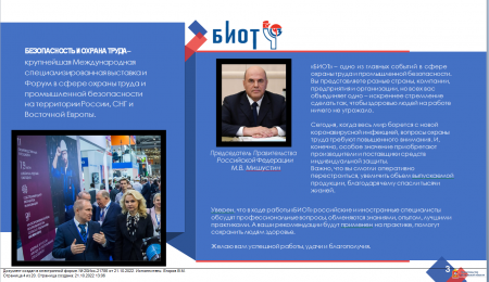 Проведение с 6 по 9 декабря 2022 г. в г. Москве на территории ЦВК Экспоцентр Международного форума и 26-ой специализированной выставки «Безопасность и Охрана труда» (далее - БИОТ)