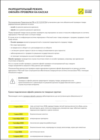 С 1 марта 2025 стало обязательной проверка маркировки в офлайн-режиме для 13 групп товаров.