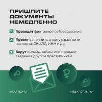 Как действуют мошенники — рассказываем в карточках. Будьте аккуратны при выборе нового места работы!
