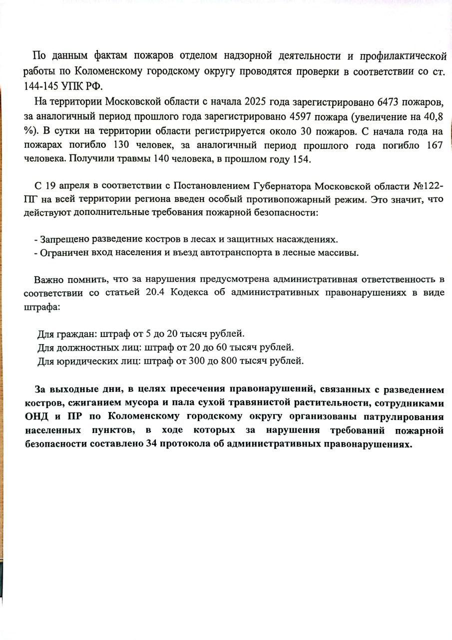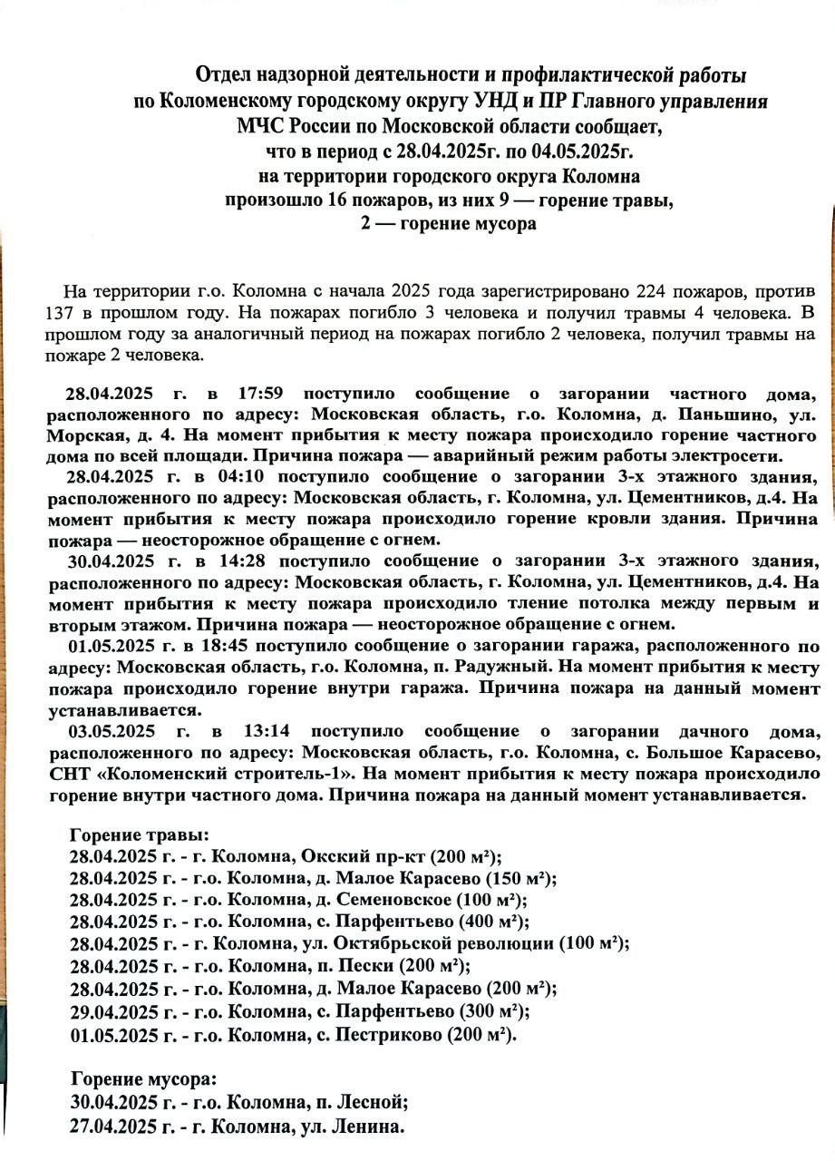 Сводка по пожарам с 28 апреля по 4 мая 2025 года.
