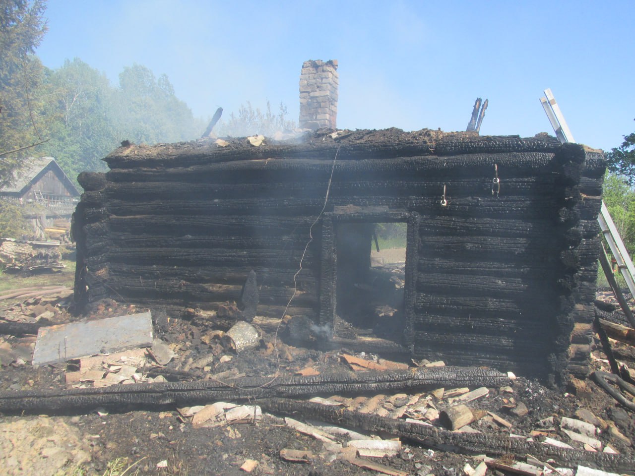 На момент прибытия первых пожарно- спасательных подразделений дом горел изнутри по всей площади. В результате пожара дом выгорел изнутри по всей площади, кровля обвалилась. В результате пожара погибших и пострадавших нет. Причина пожара — устанавливается.
