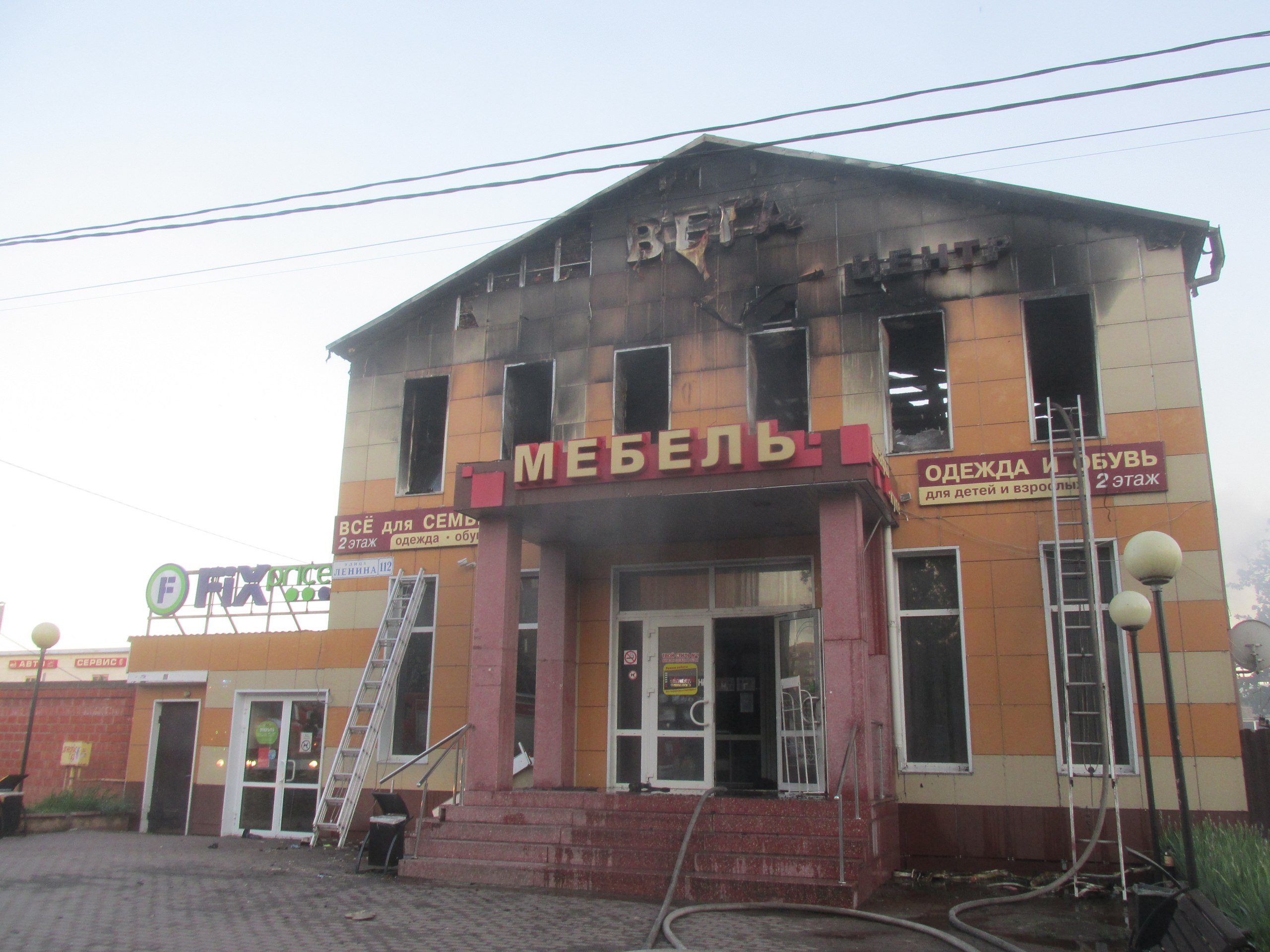 На момент прибытия первых пожарно- спасательных подразделений второй этаж торгового центра «Вега» горел изнутри открытым огнем по всей площади. В результате пожара второй этаж торгового центра «Вега» выгорел изнутри, перекрытия и кровля обвалилась по всей площади. В результате пожара погибших и пострадавших нет. Причина пожара — устанавливается.