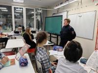 Инспектор по делам несовершеннолетних рассказала школьникам о деструктивных интернет-ресурсах, с помощью которых преступники вовлекают несовершеннолетних в незаконную деятельность. Полицейский разъяснила, что действия террористической направленности являются уголовными преступлениями.