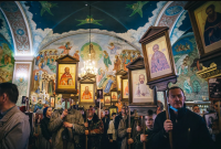 За Литургией молились паломники и прихожане, среди них была депутат Государственной думы, Герой России, летчик-космонавт Елена Серова.