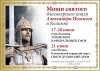 Ковчег с мощами святого благоверного князя Александра Невского привезут в Коломну. Святыню доставят по благословению Святейшего Патриарха Московского и всея Руси Кирилла в ознаменование 800-летия со дня рождения князя.