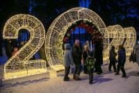 В этом году локация новогодних торжеств впервые была изменена. Праздник устроили в новом парке "Сосновый бор", где установили 13-метровое праздничное дерево. Ель украсили электрогирлянды и десятки игрушек - шары и снежинки. В целом, её оформили в серебристо-синих тонах.