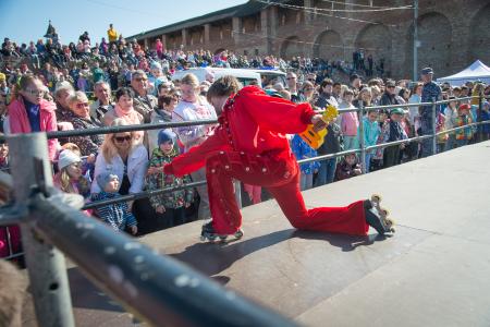 «Мы к вам заехали на час. Вам крупно повезло!» – шоу на роликовых коньках «Бременские музыканты» собрало на площадке за Маринкиной башней Коломенского кремля семь тысяч жителей округа. Это представление фигуристов из команды Татьяны Навки и Петра Чернышева стало продолжением ледовых программ, которые показали этой зимой в парках Подмосковья.