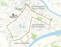 Основными точками маршрута ПЕРВОГО НАПРАВЛЕНИЯ будут: Старый город – микрорайон Подлипки – Акатьевское шоссе – Колычево (через ул. Астахова) – проспект Кирова – ул. Ленина – Окский проспект – Голутвин – ул. Октябрьской революции – Старый город.