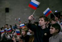 Со сцены звучали песни в поддержку нашей страны и её многонационального народа. Волонтёры раздавали георгиевские ленточки и триколор.