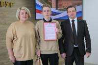 Елизавета Бондарева еще учится в школе, но с будущим уже определилась – станет учителем истории! Сегодня у девушки сбылась иная мечта, но не менее значимая: Лиза в числе пятерых жителей округа, получивших сертификат на приобретение собственного жилья. Документ им вручили замглавы администрации Алла Черкасова и начальник окружного управления социального развития Александр Шандров.