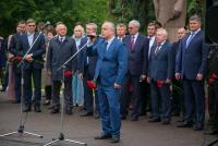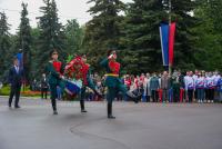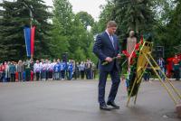 В память о мужестве и героизме воинов и тружеников тыла нашего города, отстоявших честь и независимость Родины в Великой Отечественной войне 1941-1945 годов, была объявлена Минута молчания. Затем под музыкальное сопровождение в исполнении военного оркестра, почетные гости возложили цветы и венки к Вечному огню. Митинг завершился оружейным салютом.