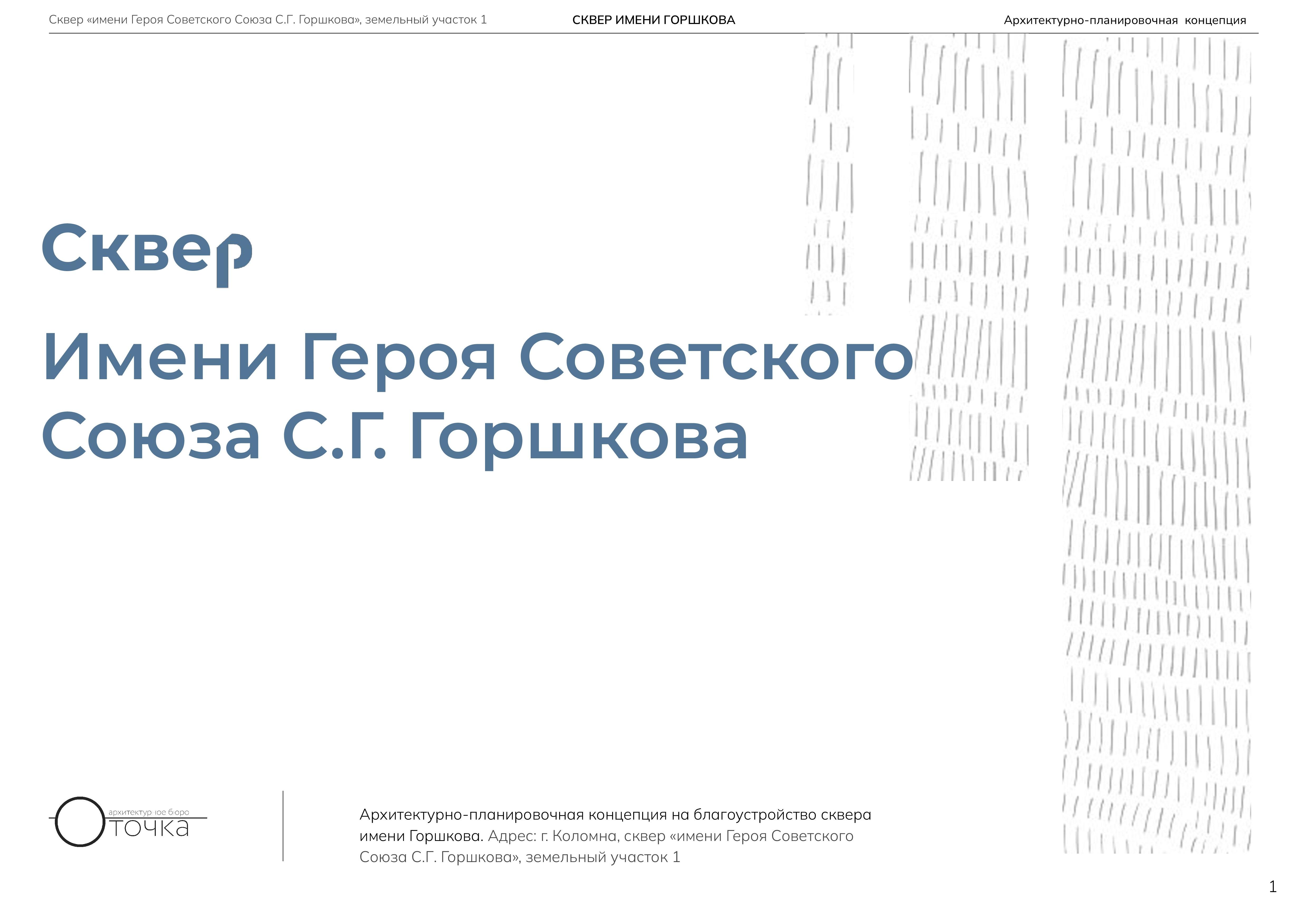 Архитектурно-планировочная концепция на благоустройство сквера имени Горшкова. Адрес: г. Коломна, сквер «имени Героя Советского Союза С.Г. Горшкова»